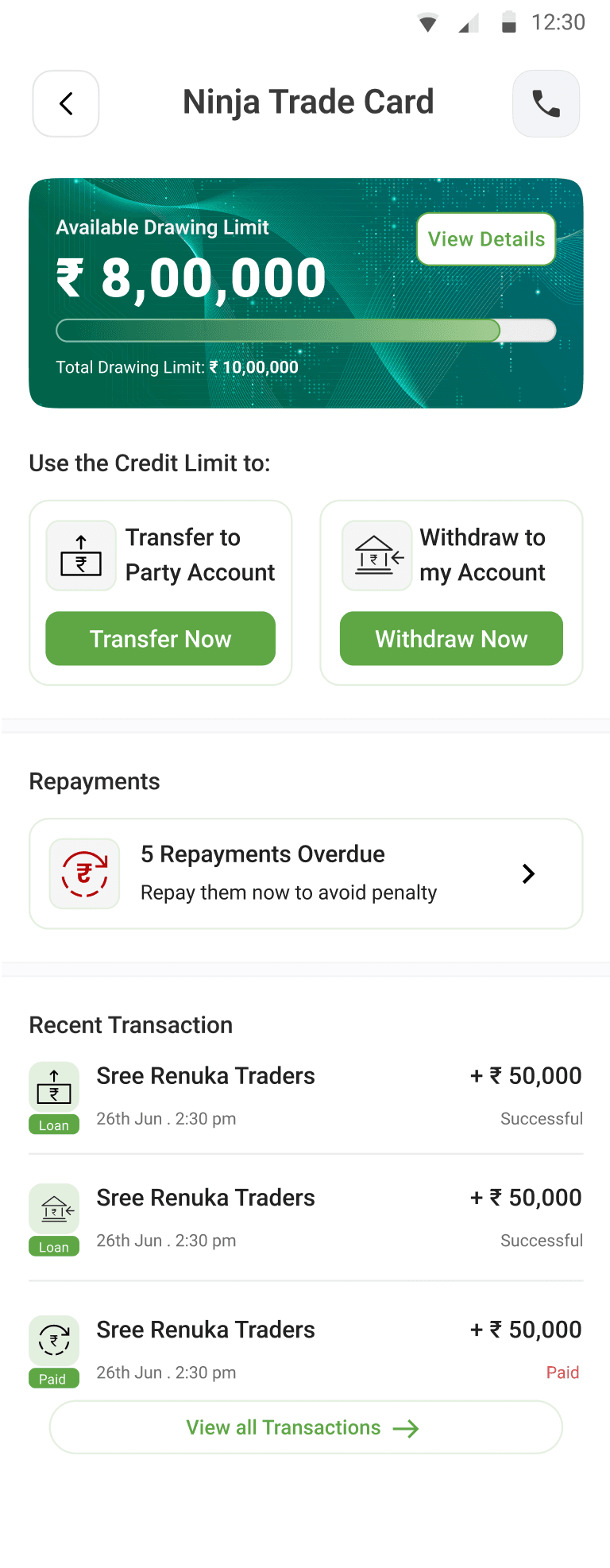 Repayment Tab: To encourage users to engage with the repayment process more actively, we redesigned the repayment tab to be a tappable card, displaying important information like the number of overdues and subtle UX copy about penalties if not paid.