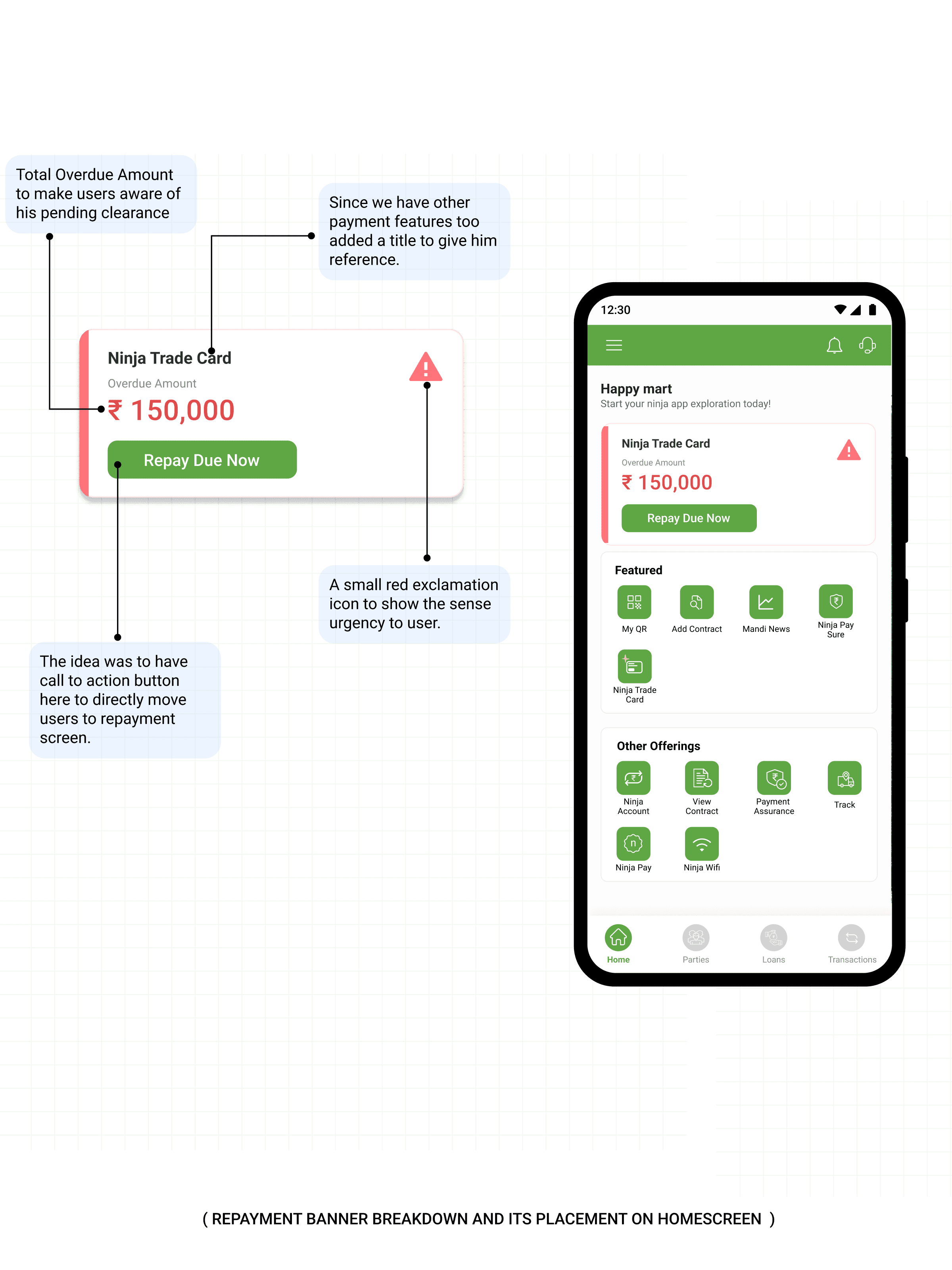After ideating we found users often overlook vital repayment details buried within the Ninja Payment App, leading to disengagement and mistrust.