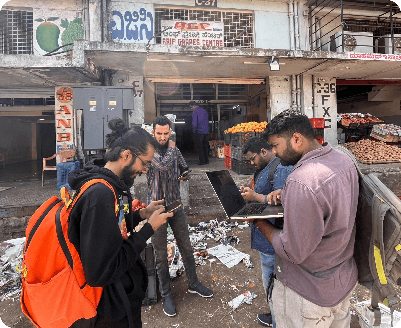 As a designer, we felt it was crucial to get a firsthand perspective from our users. So, we packed our essentials and headed straight to Huskur Fruit market in Bangolore, ready to engage in meaningful conversations. We had in-depth conversations with seven users to gain a deeper understanding of the problems they encounter while navigating our loan app and managing their repayments.